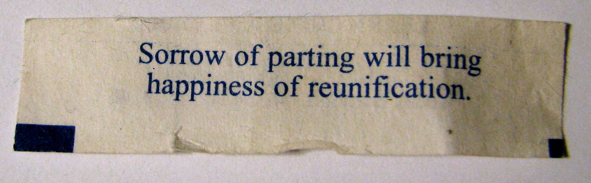I love reading the little fortunes inside of fortune cookies. Sometimes they’re not really fortunes (like my sister’s “the rubber bands are heading in the right direction”), but sometimes they’re really nice; and in either case I get to smile.